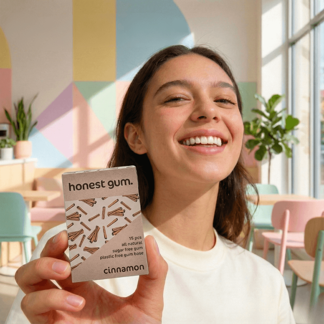 Conventional chewing gums often list the ingredient “gum base” — a catch-all term that can include plastics and synthetics without naming them specifically.